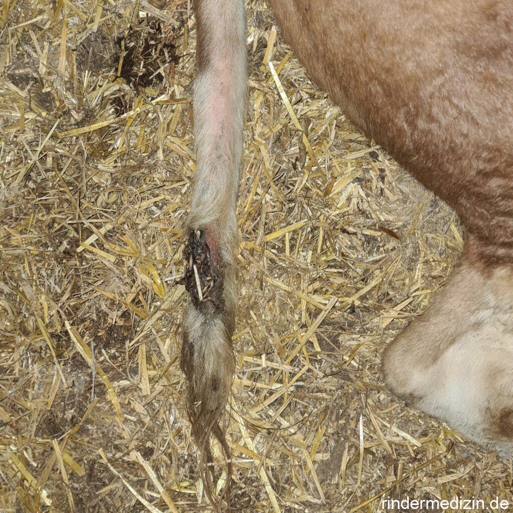 Erste Veränderungen der Schwanzspitze (Hyperkeratose, Haarausfall) treten meist bei Mastbullen mit 200 kg auf. Probleme mit einer Entzündung der Schwanzspitze haben in der Regel Tiere mit mehr als 300 kg.