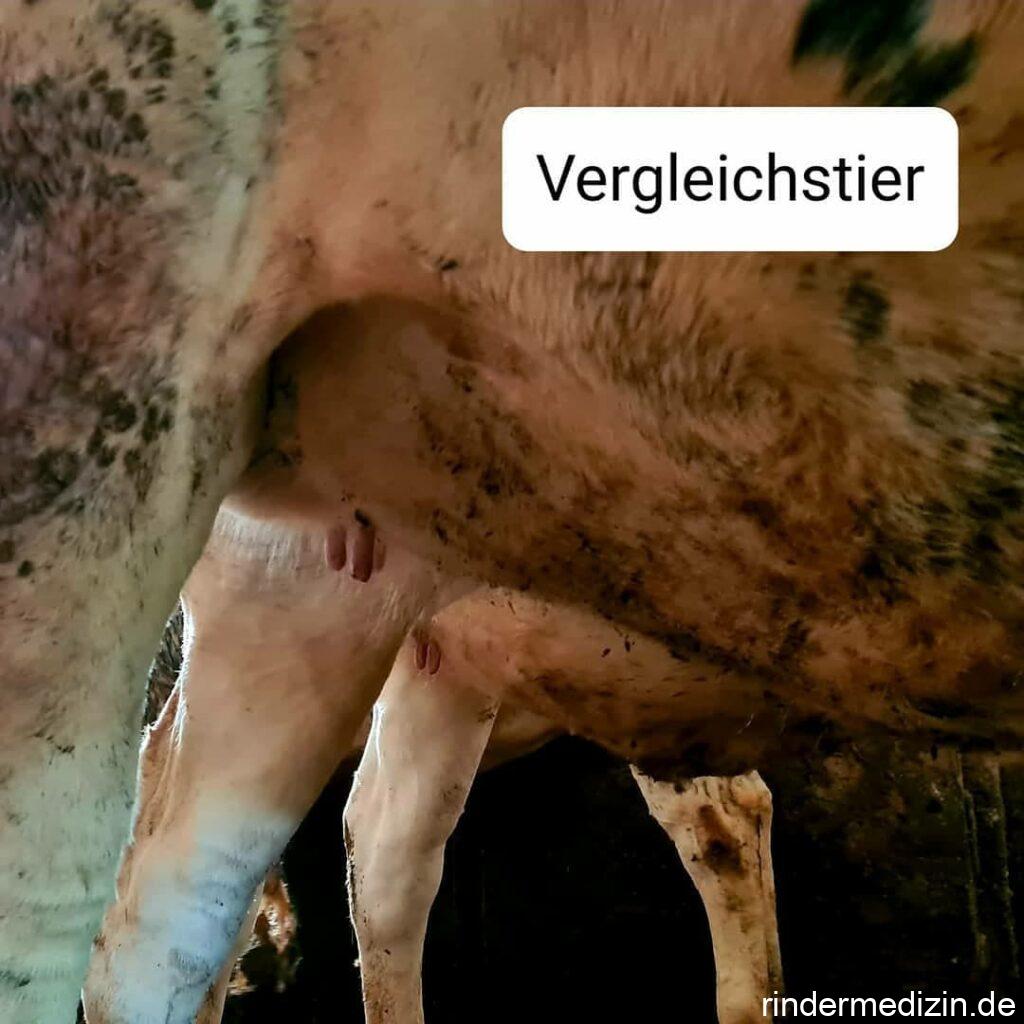 Das weibliche Tier bildet ein Euter. Das ist ja eigentlich keine Überraschung. Nun sagt der Landwirt aber, dass das Tier nicht besamt wurde. Das ist glaubwürdig, da es sich um ein Mastrind handelt. Trotzdem ist es sinnvoll eine Trächtigkeit auszuschließen. Die kann nämlich auch durch direkten Kontakt zwischen männlichen und weiblichen Individuen zustande kommen. Die TU war negativ und das Euter ist immer noch da. Das kann mehrere Ursachen haben. Eine ist das Besaugen durch andere Tiere. Das Tränken aus dem offenen Trog befriedigt das Saugbedürfnis nicht ausreichend und am Maul verbleibenden Milchreste regen das Saugen zusätzlich an. Wenn das Saugbedürfinis dann am Euter anderer Tiere befriedigt wird, kann es zur Euterbildung bis hin zu einer Art Milcheinschuss kommen.