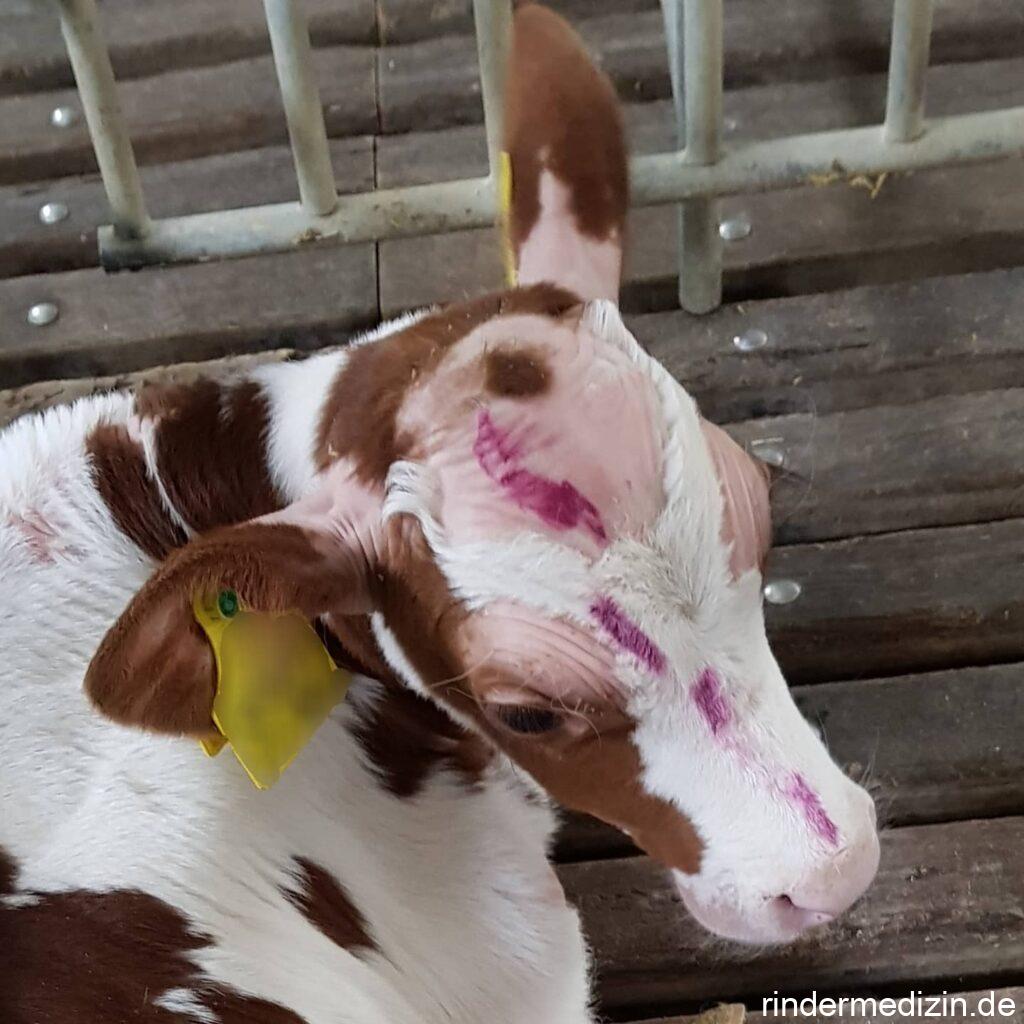 Dieses Kalb ist etwa 2-3 Wochen alt und wurde gerade im Maststall eingestallt. Sofort fällt auf, dass es an allen möglichen Körperteilen Fell verloren hat. Was war passiert?