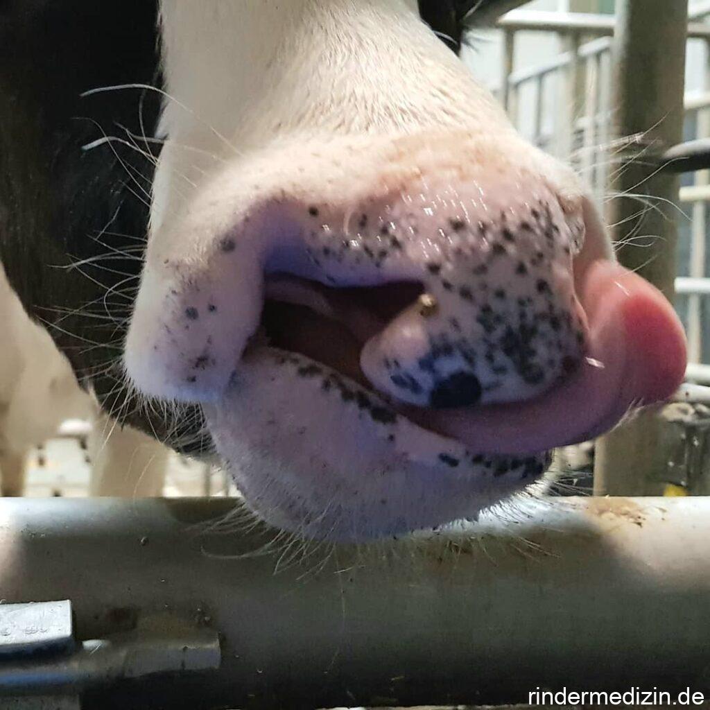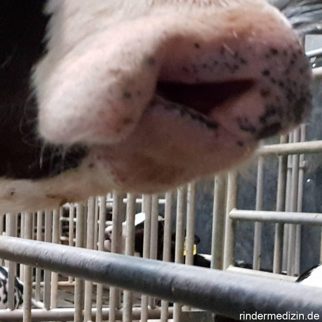 Aus unser beliebten Reihe „Missbildungen beim Rind“ haben wir wieder einen Fall. Dieses Kalb hat beidseitig Nasen-Oberlippen-Spalten oder auch Spaltnase. Wenn nur ein Spalt vorläge wäre es eine #Hasenscharte. In der Uni sagt man dazu Rhinognatholabioschisis. Die Ursachen sind wie bei der Gaumenspalte, die wir vor kurzem besprochen haben. Dieses Kalb hat aber bessere Überlebenschancen, denn sein Gaumen ist vollständig.