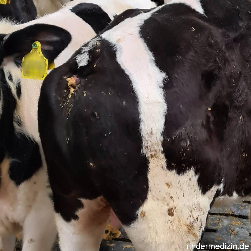 Diese Missbildung ist erblich (um genau zu sein polygen autosomal rezessiv mit Schwellenwert). Was bedeutet, dass nicht jedem Kalb mit der Anlage dazu auch der Schwanz fehlt. Dieser Genfehler ist bisher von gefleckten Rinderrassen (Holstein Friesian, Rotbunte, Fleckvieh) bekannt. Mit solchen Rindern sollte man natürlich nicht züchten, aber ansonsten sind sie in ihrer Lebensfähigkeit nicht eingeschränkt. Sie können keine Fliegen mit ihrem Schwanz vertreiben und eine Blutprobe aus der Schwanzvene ist nicht möglich. Kann man sich denken. Manchmal gibt es allerdings zusätzliche Missbildungen, die die Lebensqualität einschränken oder sich nicht mit dem Leben vereinbaren lassen. Mögliche zusätzliche Missbildungen sind beispielsweise Kreuzbeindeformationen, Hydrocephalus, Anophthalmie oder Atresia ani et recti.