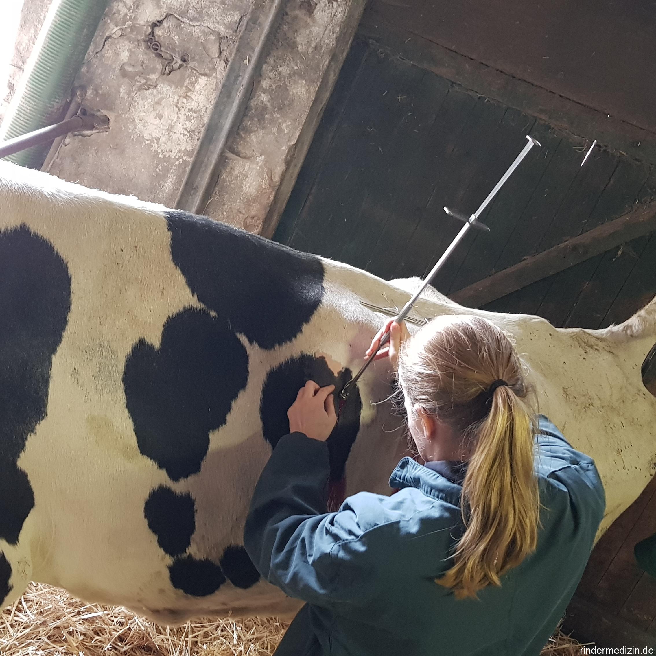 Wir sind uns jetzt sicher: Die Kuh hat Milchfieber. Es ist also eine Behandlung angebracht. Diese erschließt sich schnell: Wir geben eine Calciuminfusion. Dabei gilt folgende Regel: Nicht mehr als 10 g in 10 Minuten. Sollte man sich unsicher sein, hört man am besten während der Infusion das Herz ab. Calcium wirkt nämlich auf das…