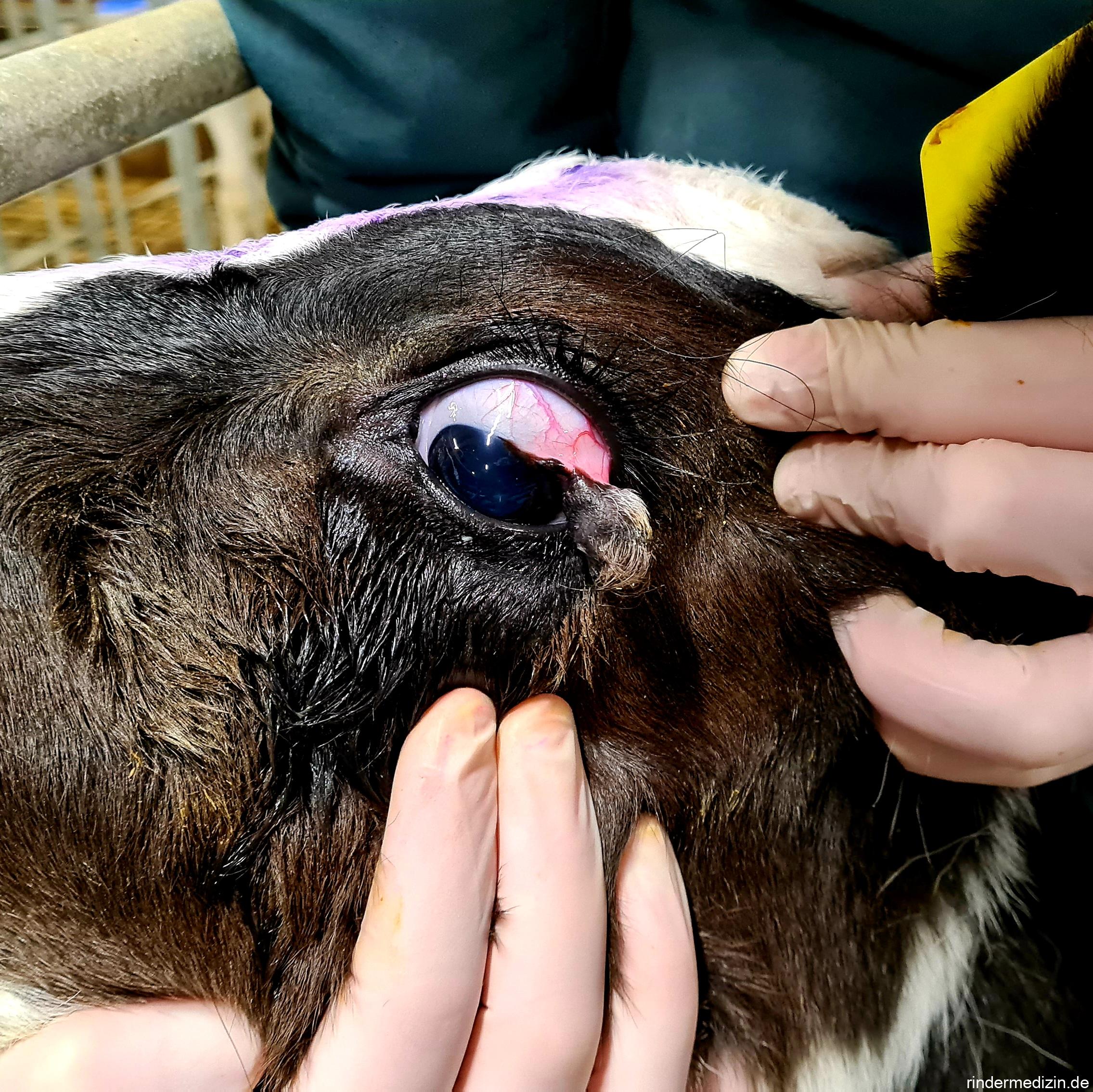 Heute zeigen wir ein Bindehautdermoid bei einem Kalb. Bei einem Dermoid handelt es sich um einen (meist) gutartigen Tumor, der schon bei Geburt vorhanden ist. Man sagt dazu gerne „versprengte Hautinsel“. Diese Missbildung kommt insbesondere beim Hereford-Rind vor, wurde aber auch schon bei vielen anderen Rinderrassen beschrieben. Die Ursache ist nicht unbedingt für alle Dermoide…