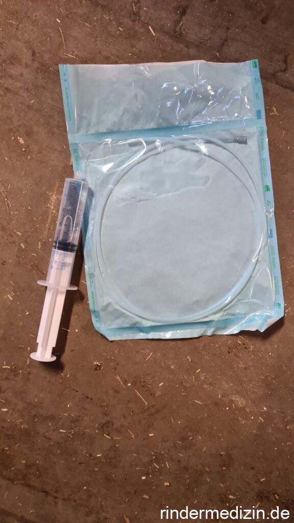 Zur Probennahme benötigt man einen etwa einen Meter langen Polytetrafluorethylen-Schlauch. Ein Ende wird leicht abgeknickt, in das andere Ende wird eine Kanüle mit Luer-Anschluss gesteckt. Nun wird der Kopf des Tieres angehoben und der Schlauch mit dem abgenickten Ende in den unteren Nasengang eingeführt. Die Abknickung zeigt dabei nach unten. Der Schlauch wird bis zum Kehlkopf vorgeschoben und es folgt der schwierige Teil. Durch leichtes vor- und zurückziehen wird versucht in die Luftröhre zu kommen. Ist man richtig, so hustet das Rind und man merkt die hubbelige Struktur der Luftröhre beim weiteren vorschieben. Der Schlauch wird nun bis in die Aufzweigung der Luftröhre (Bifurcatio trachae) geschoben. Dann wird sterile NaCl-Lösung mit einer Spritze durch den Schlauch eingebracht und mit der Spritze wieder zurückgewonnen. Das ganze Volumen bekommt man nicht wieder, aber der Körper resorbiert den Rest. Anschließend wird der Schlauch wieder gezogen.