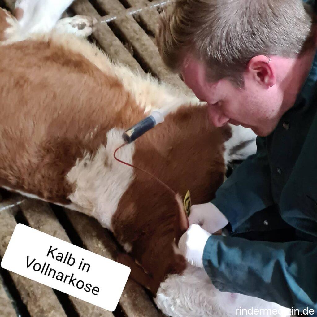 Schon vor der Spülung sollte so ein Kalb mit einem Schmerzmittel versorgt werden (Schmerzgedächtnis!). Zudem ein trübes Antibiotikum, um eine Infektion der Wunde zu verhindern. Trübe Antibiotika helfen meist ganz gut gegen Eitererreger. Wenn du im Tierarztauto mal ein paar Flaschen in die Hand nimmst wirst du schon erkennen welche klar sind und welche trüb sind. Amoxicillin ist beispielsweise (fast) immer trüb. Wir geben das Antibiotikum für gewöhnlich 5 Tage, das Schmerzmitteln drei Tage. Je nach Zustand des Patienten gelegentlich länger.