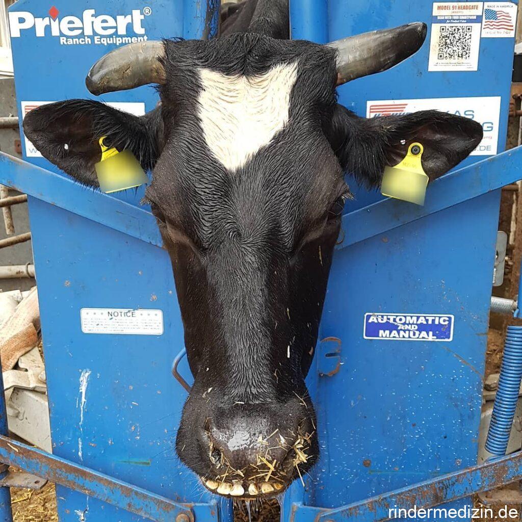 Doch zurück zu unserer Patientin auf dem ersten Bild. Bei dieser Dame fiel in der ersten „Übersichtsuntersuchung“ lediglich eine nur geringgradig reduzierte Pansentätigkeit und ein mittelgradig erhöhter ß-Hydroxybutyrat-Gehalt im Blut, auf den zweiten Blick auch mittelgradig erhöhter Speichelfluss auf.