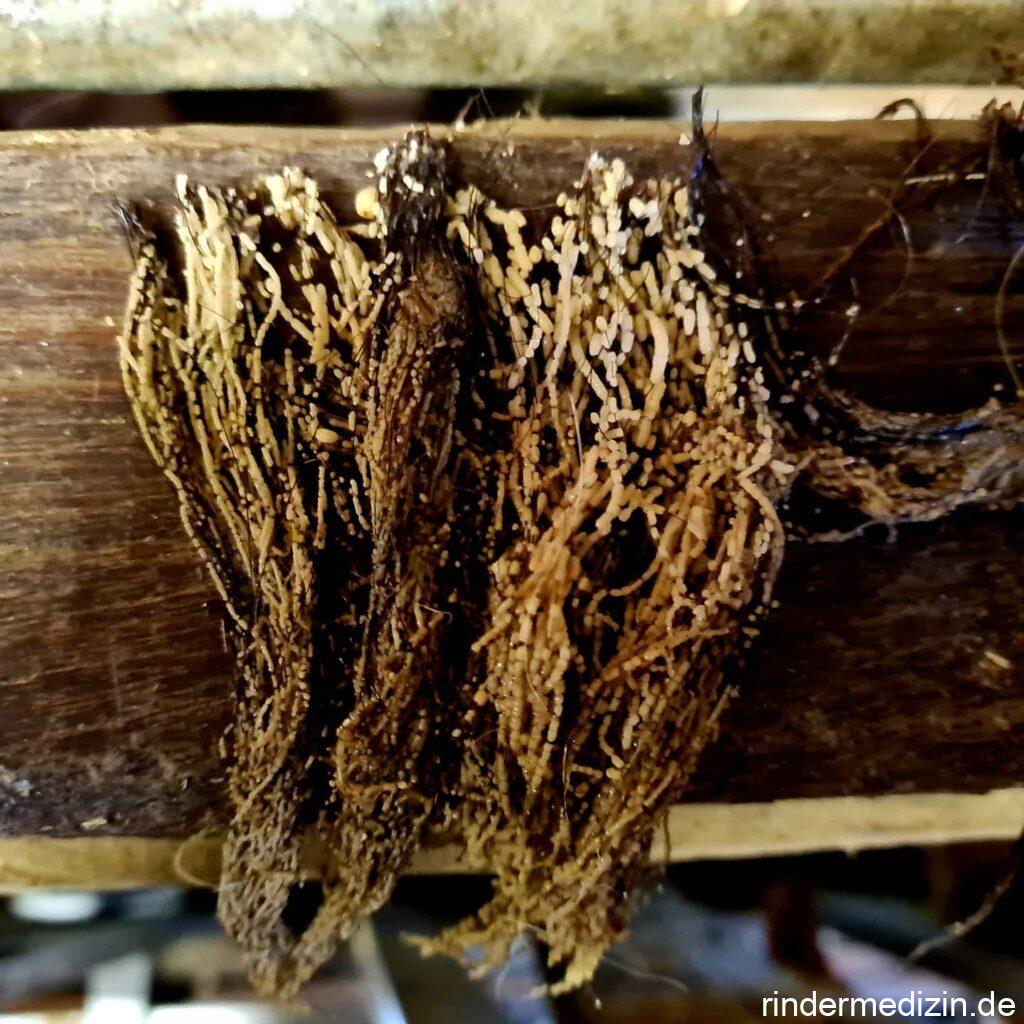 Wenn man von Urolithiasis spricht sind damit Harnsteine in harnableitenden Organen gemeint. Auf den Fotos seht ihr Harngrieß in den Pinselhaaren eines Rindes.
